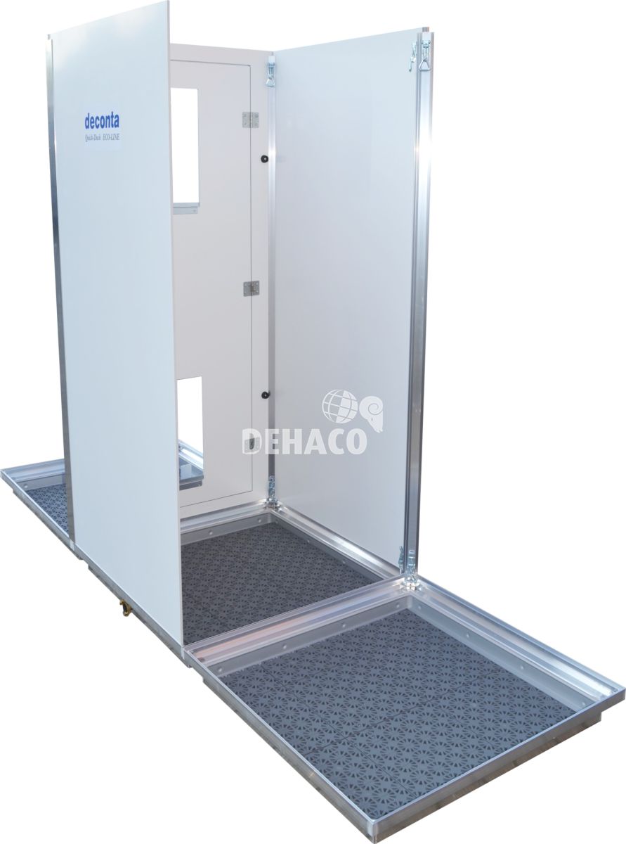 De ECO-line personendouche bestaat uit 3 compartimenten: een schone ruimte, een doucheruimte en een vuile ruimte.