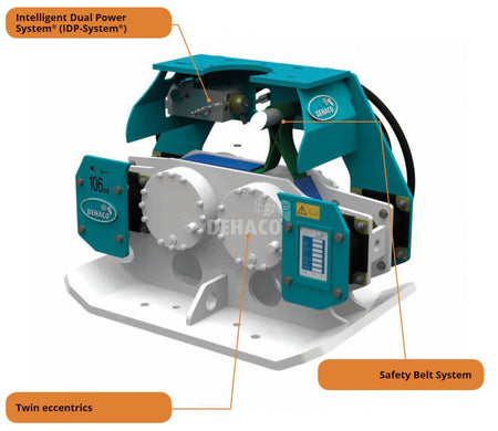 De hoge kwaliteit - Dutch Product - staat garant voor topprestaties. Met het Intelligent Dual Power System (IDP System®) van Dehaco kan de draairichting van de hydromotoren simpel worden ingesteld om zo efficiënt mogelijk een klus te klaren. Het Safety Belt System zorgt ervoor dat Hyrax trilblokken voldoen aan de strengste veiligheidsnormen.